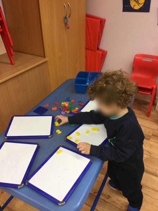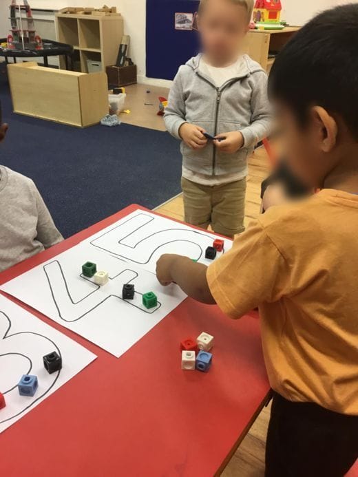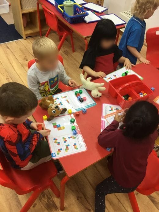We made our own games using the coloured cubes where we could assess the knowledge of patterns, colour, number recognition and quantity. We made a maths focused talking board for children to tell us something about what they see.